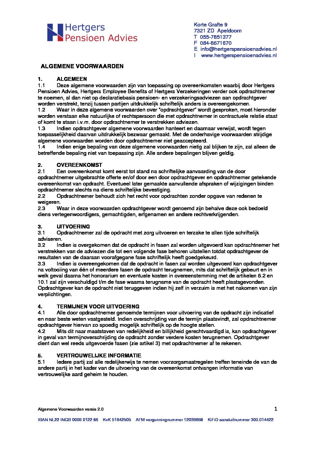 Dit zijn de actuele Algemene Voorwaarden van Hertgers Pensioen Advies.